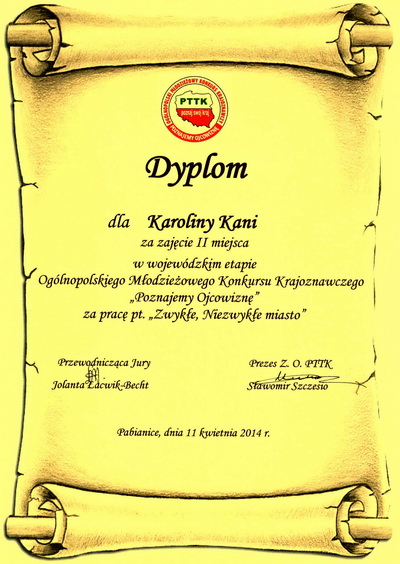 Dyplom dla Karoliny