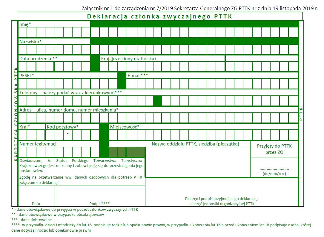 Posiadacz legitymacji staje się pełnoprawnym członkiem PTTK. Legitymację może wyrobić każda osoba, która zgłosi się do siedziby Oddziału w Żarnowe, opłaci składkę, dostarczy