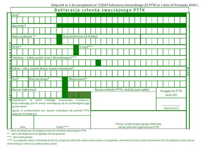 dwa zdjęcia oraz wypełni deklarację członkowską.